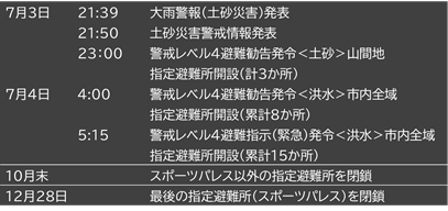 大雨警戒情報の発令後、警戒情報、避難勧告、避難指示と徐々に危険度が高まり、指定避難所も次々と開設していきましたが、その対応をする人手が足りず本当に大変でした。