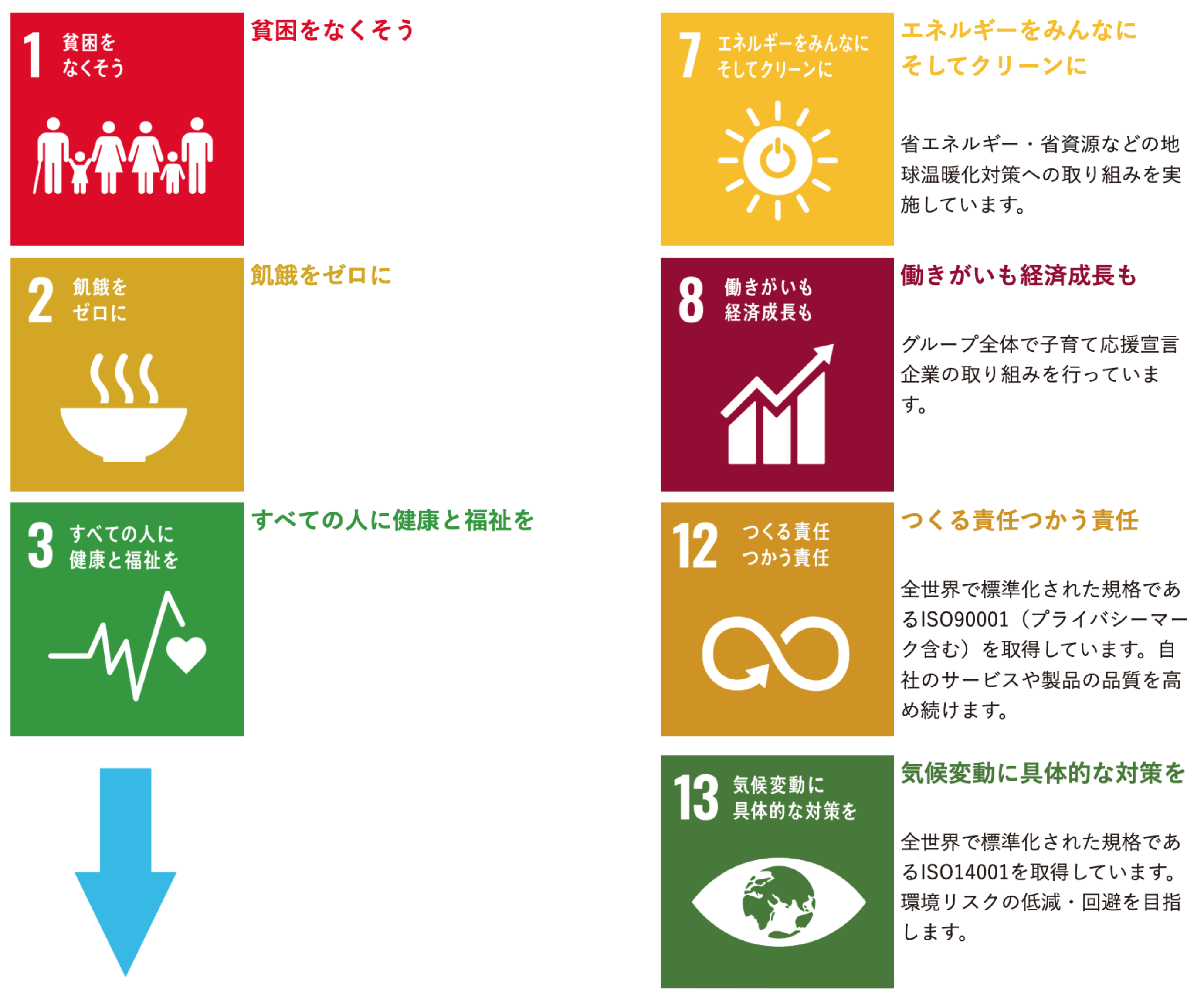 私たちは、経営理念とともにSDGsの理念にも賛同し、以下の取組みを行います。